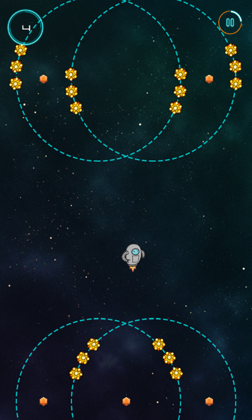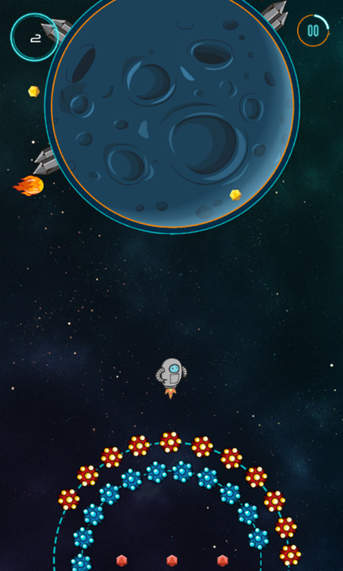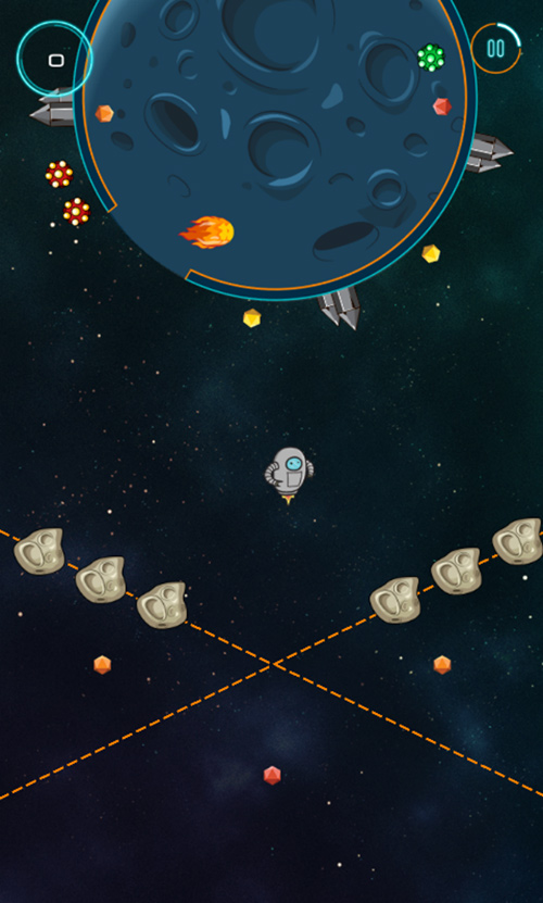 With the help of your equipped rocket thrusters, make your way from planet to planet, collecting ions while avoiding asteroids, meteor showers, enemies, and other interstellar obstacles. How many solar systems can your conquer with the help of your intrepid robot?